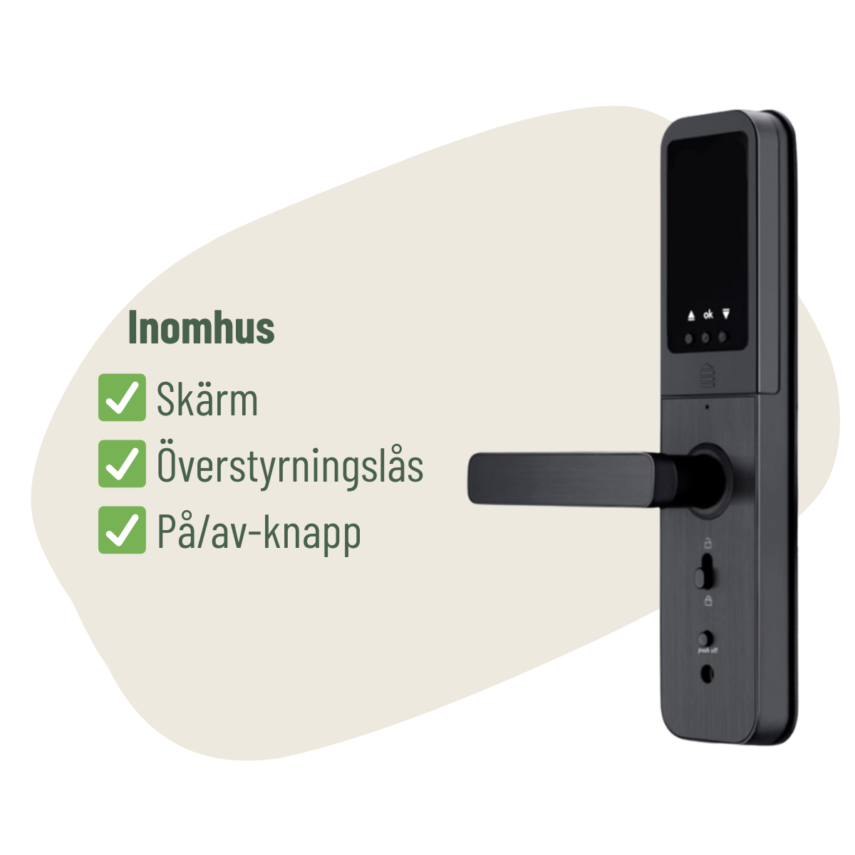 - Batterier och test: Sätt i batterierna och kontrollera att handtaget och låset fungerar.