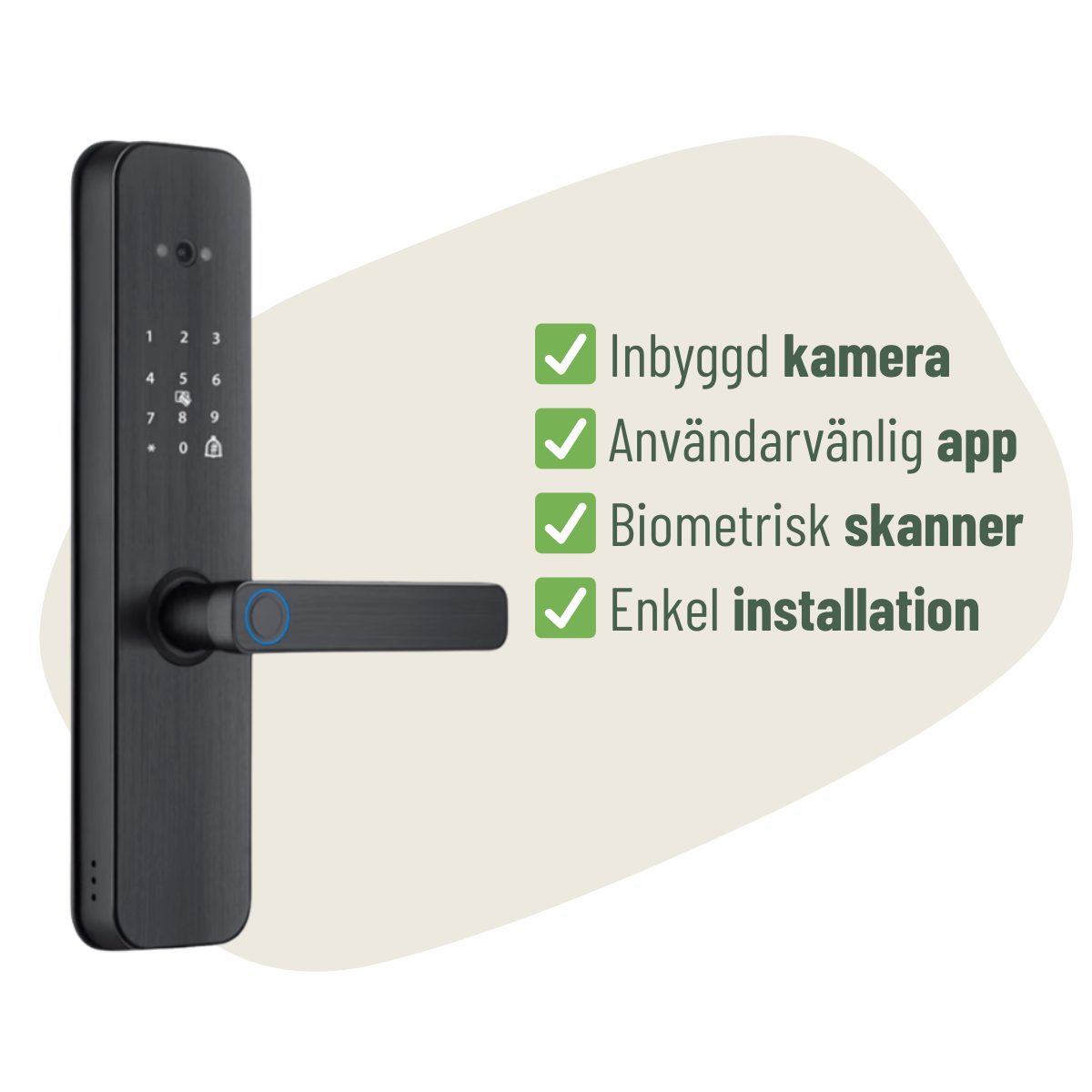 ✅ Biometrisk fingeravtryck, kod eller app för att låsa dörren.